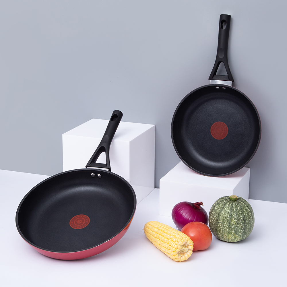 • 28*5,5 cm-es tapadásmentes piros termokróm foltos alumínium serpenyő fedél nélkül JY-HHDL22-2855