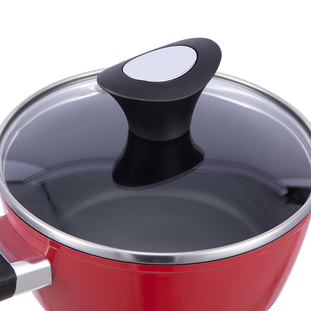 Alumíniumból készült, modern háromrétegű alaptechnológiával (alumínium rozsdamentes acél bevonat), amely egyenletesen osztja el a hőt, gyorsabb főzést biztosít, és hosszabb ideig melegen tartja az ételt. 16 cm átmérőjű, kiváló méretű különféle konyhai feladatokhoz.