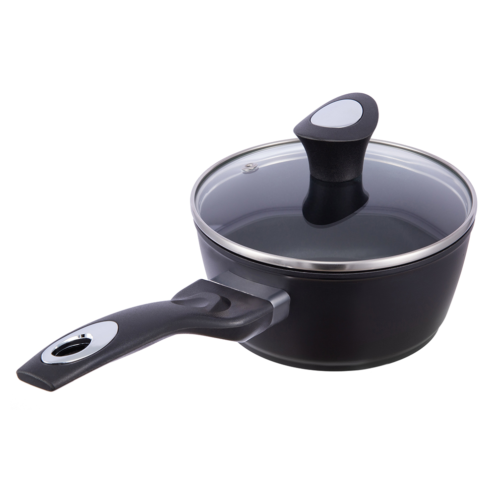 OEM/ODM 16*7,5 cm-es fekete tapadásmentes alumínium fazék üvegtetővel JY-BF29-2-1675