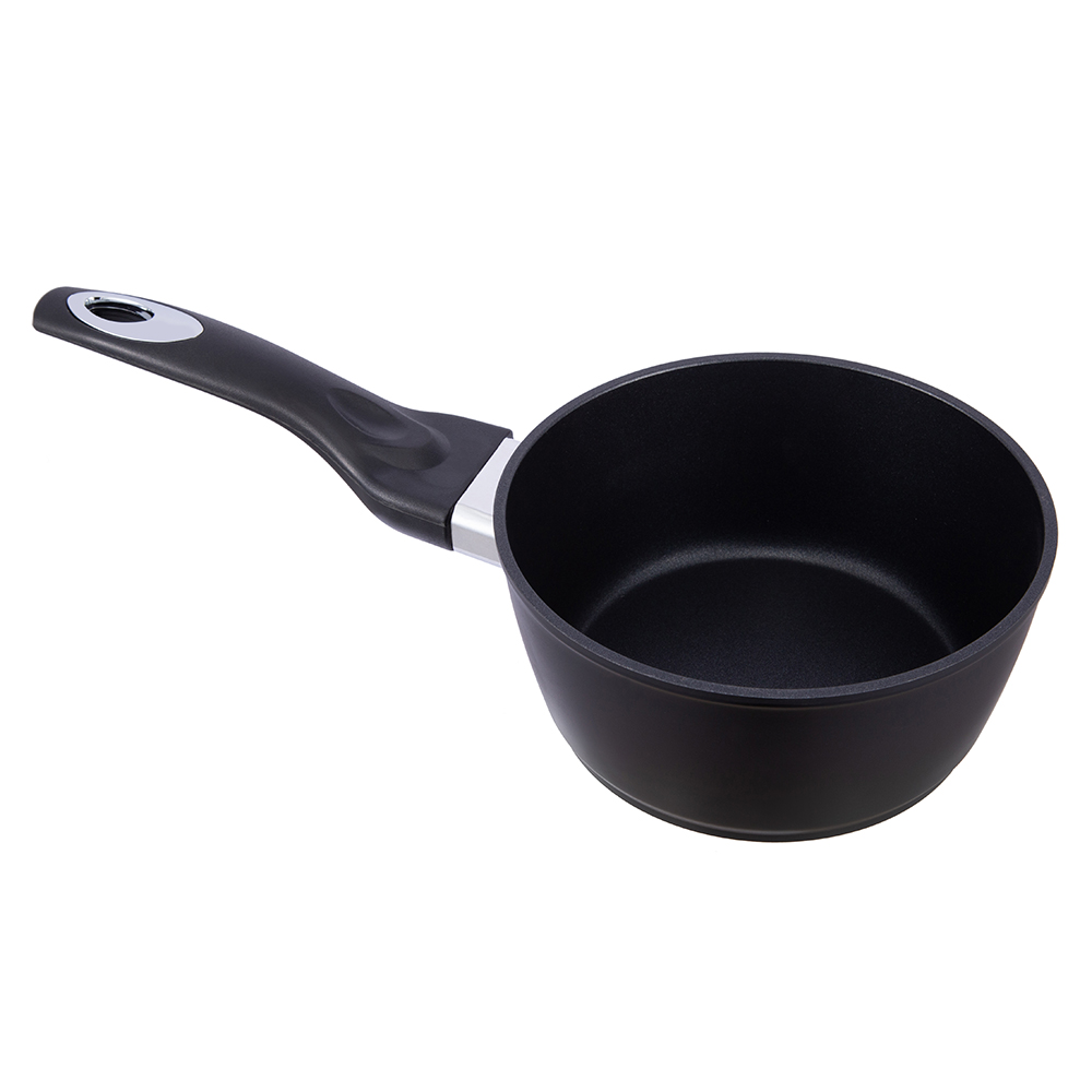 Alumíniumból készült, modern háromrétegű alaptechnológiával (alumínium rozsdamentes acél bevonat), amely egyenletesen osztja el a hőt, gyorsabb főzést biztosít, és hosszabb ideig melegen tartja az ételt. 16 cm átmérőjű, kiváló méretű különféle konyhai feladatokhoz.