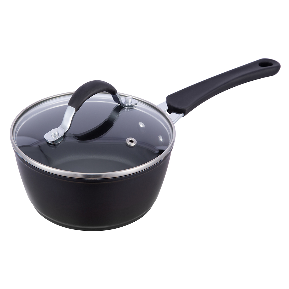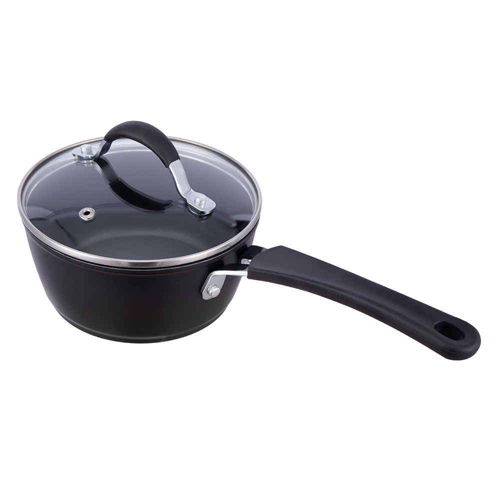 OEM/ODM 16*7,5 cm-es fekete tapadásmentes alumínium fazék üvegtetővel JY-GWQ-1675
