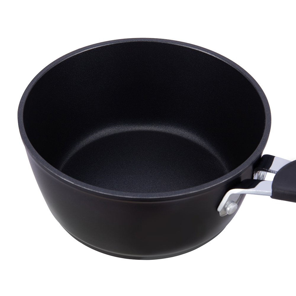 Alumíniumból készült, modern háromrétegű alaptechnológiával (alumínium rozsdamentes acél bevonat), amely egyenletesen osztja el a hőt, gyorsabb főzést biztosít, és hosszabb ideig melegen tartja az ételt. 16 cm átmérőjű, kiváló méretű különféle konyhai feladatokhoz.