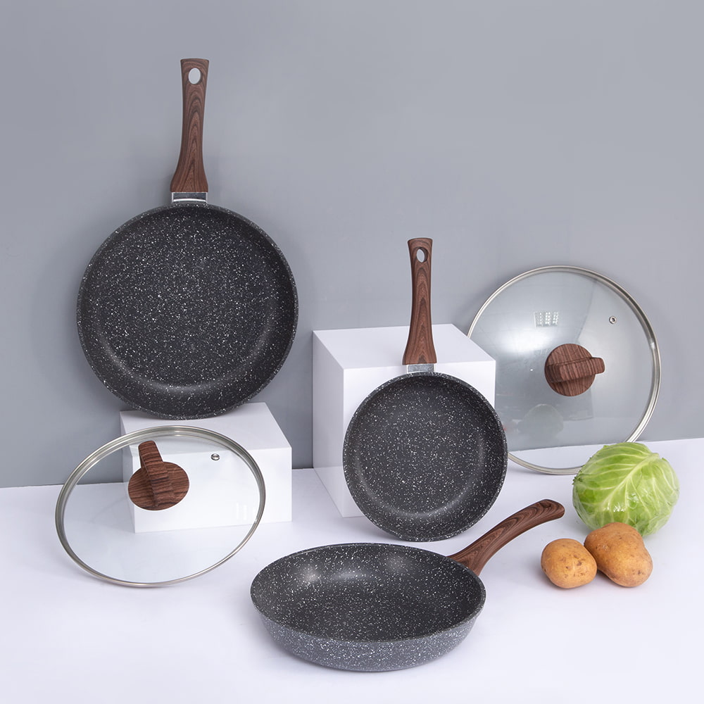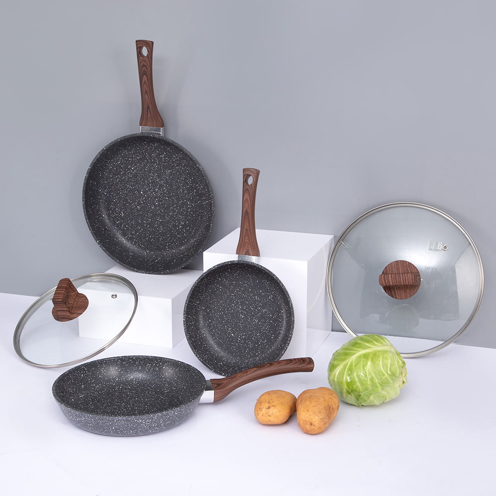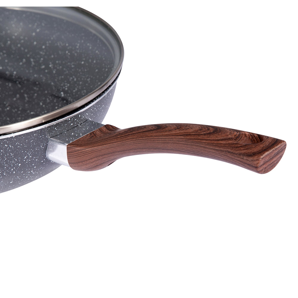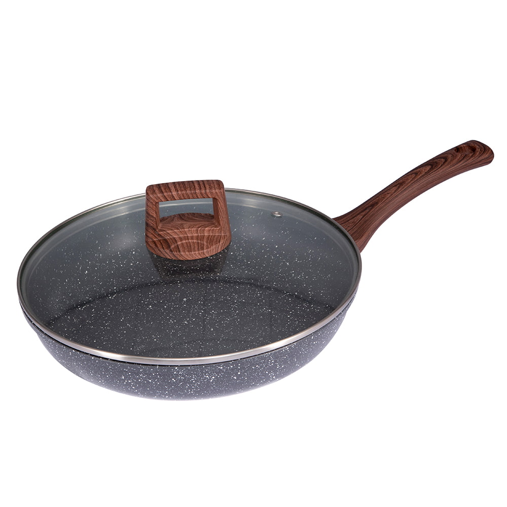 OEM/ODM 28X5,5cm fekete gyógykőbevonat Alumínium serpenyő üvegtetővel DB-2855H