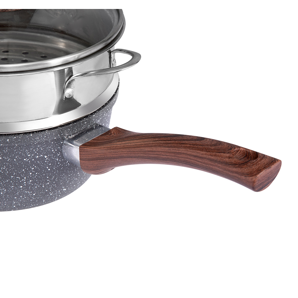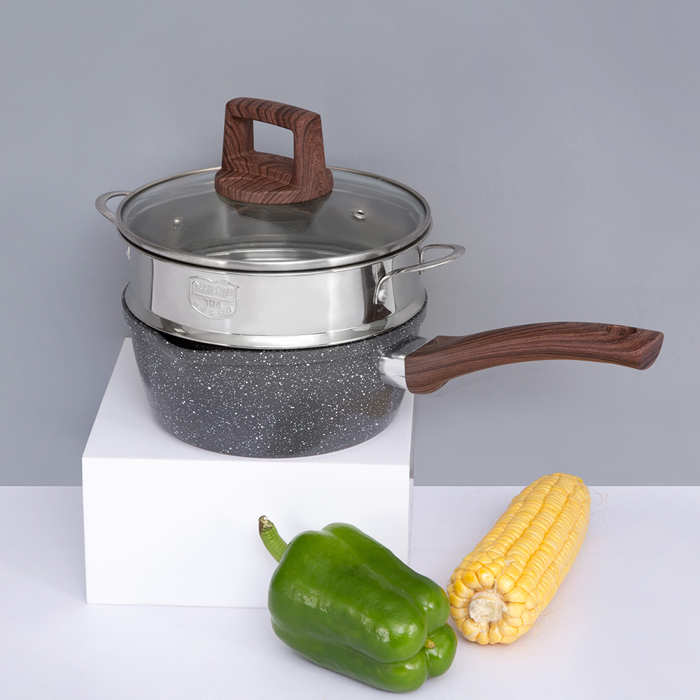 Alumíniumból készült, modern háromrétegű alaptechnológiával (rozsdamentes alumínium rozsdamentes acél), amely egyenletesen osztja el a hőt, gyorsabb főzést biztosít, és hosszabb ideig melegen tartja az ételt. 18 cm átmérőjű, kiváló méret a különféle konyhai feladatokhoz.