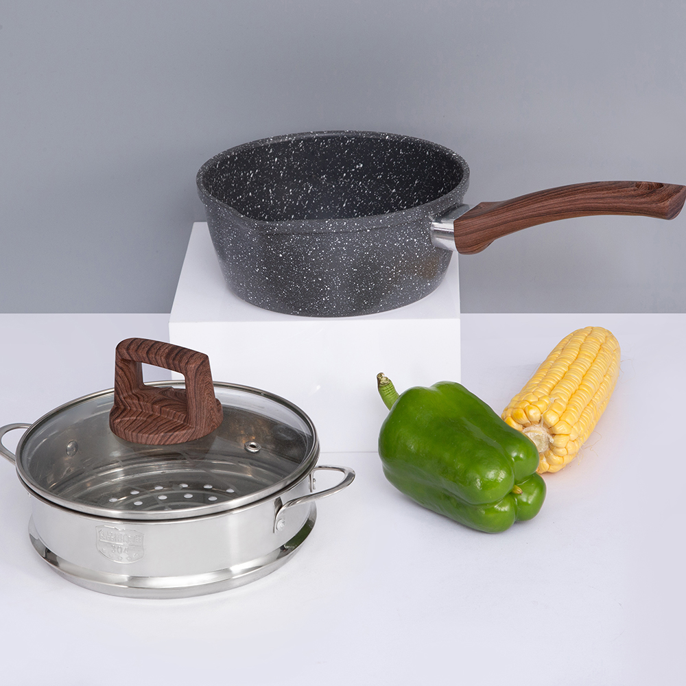 A JY Cookware DB sorozat 18 cm-es, 2,5 l-es alumínium serpenyőjével háromrétegű aljzattal és edzett üveg fedővel ételei még finomabbak lesznek!