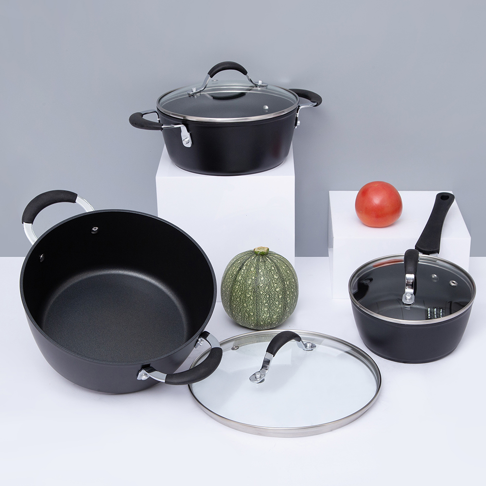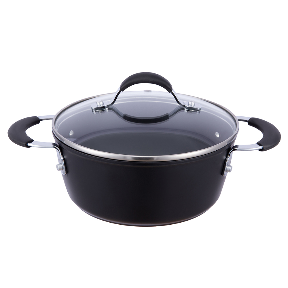 ITTHON / TERMÉK / STOCKPOT / 24*10,5cm fekete tapadásmentes alumínium edény üvegtetővel JY-GWQ-24105