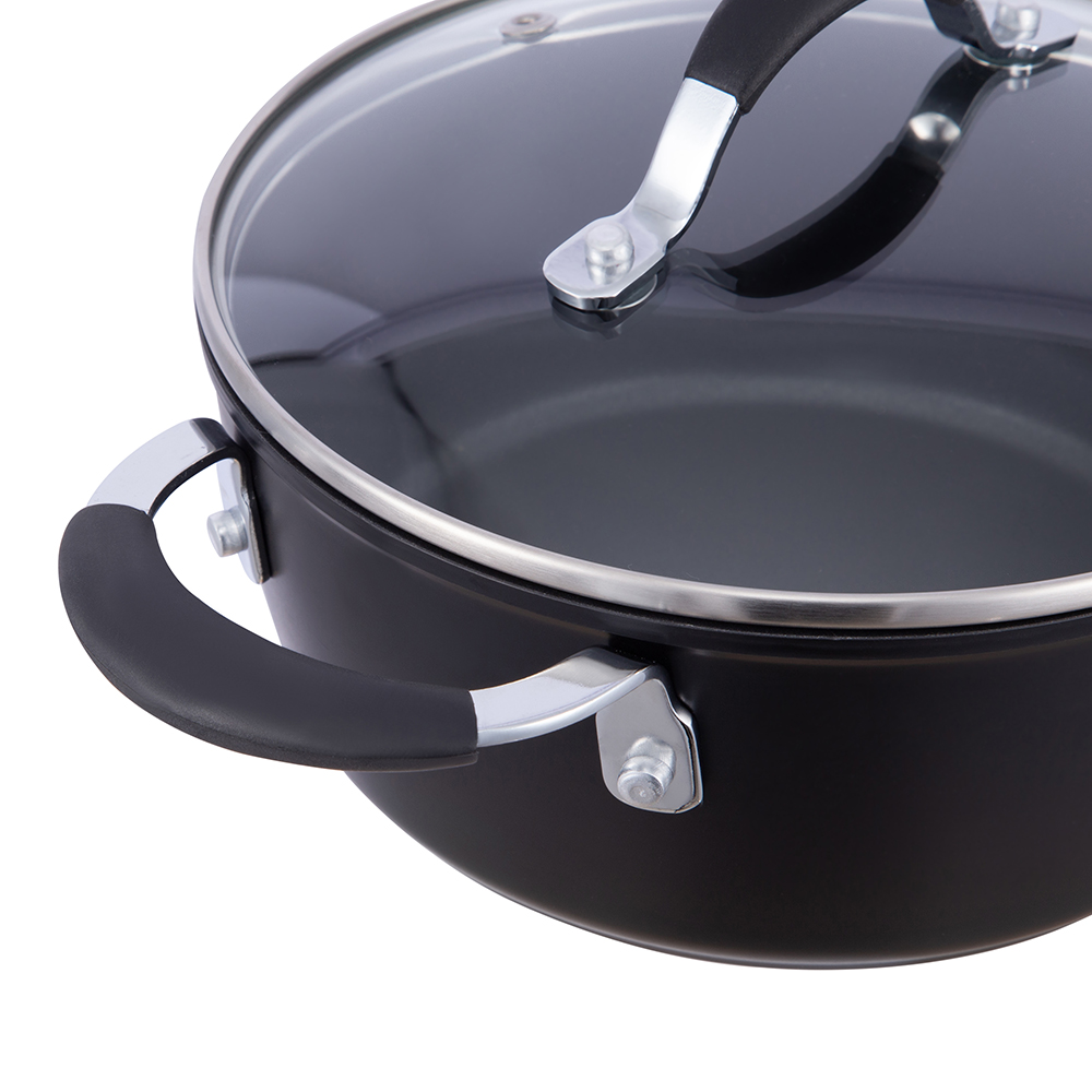 • 24*10,5cm fekete tapadásmentes alumínium edény üvegtetővel JY-GWQ-24105