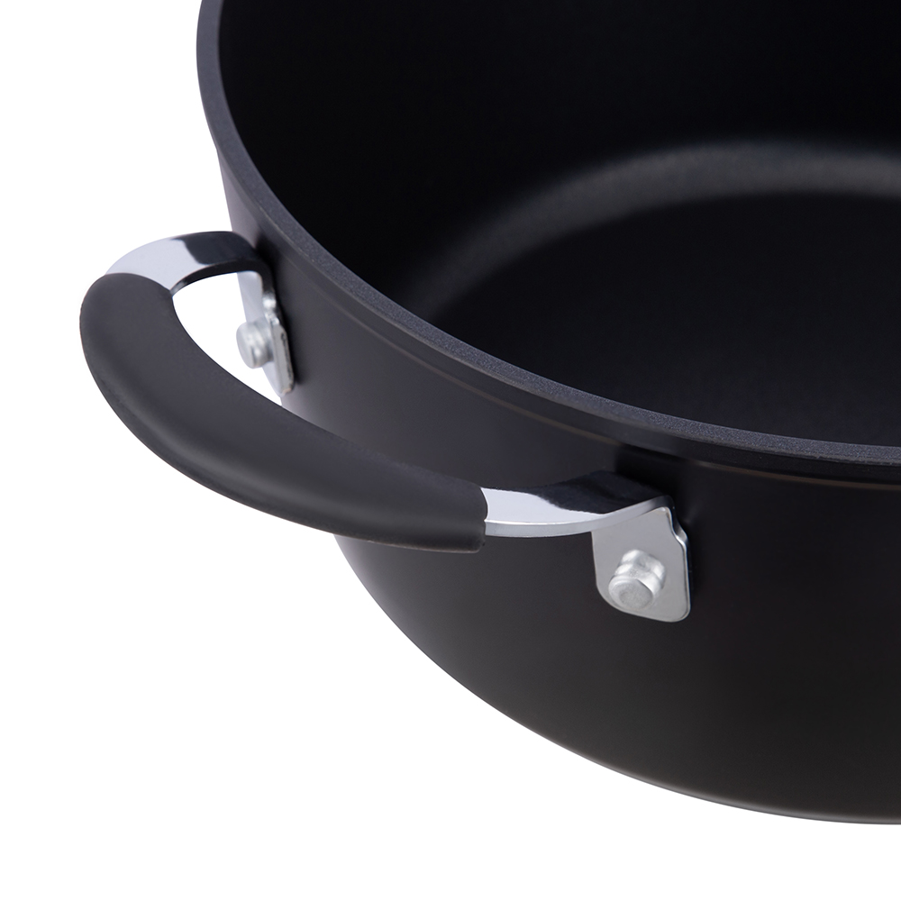 A professzionális szakácsok kézfogására kialakított, tökéletesen ferde fogantyú kényelmes és biztos fogást biztosít főzés közben.