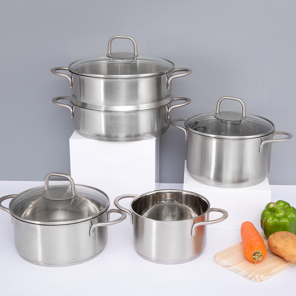 Felületkezelés: Polírozott belső és matt külső fazékhoz, rozsdamentes acél serpenyőhöz és gőzölőhöz. Bevonatos belső és matt külső minden tapadásmentes, rozsdamentes acél serpenyőhöz.