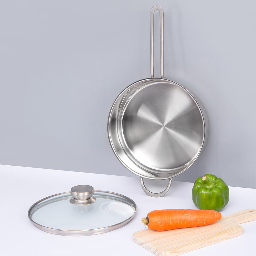 ITTHON / TERMÉK / SERPENYŐ / SUS304 rozsdamentes acél serpenyő / 24*7 cm-es serpenyő oldalfogantyúval, hosszú nyéllel és üvegtetővel JY-2407NY