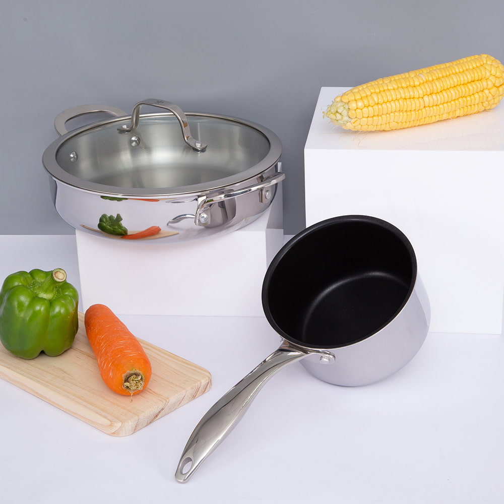 A JY Cookware SN sorozat 14 cm-es, 1,5 l-es rozsdamentes acél serpenyőjével háromrétegű alappal és edzett üveg fedővel ételei még finomabbak lesznek!