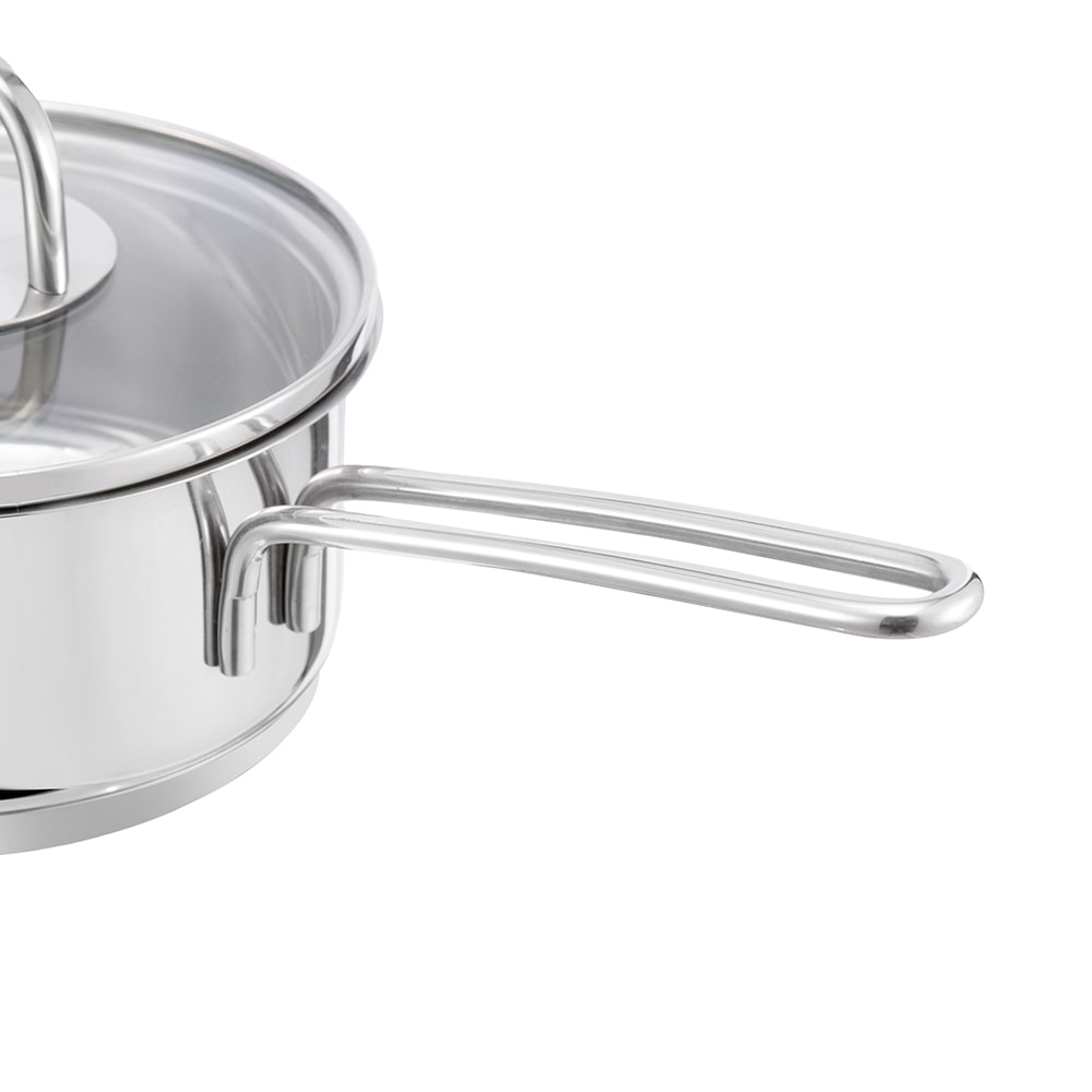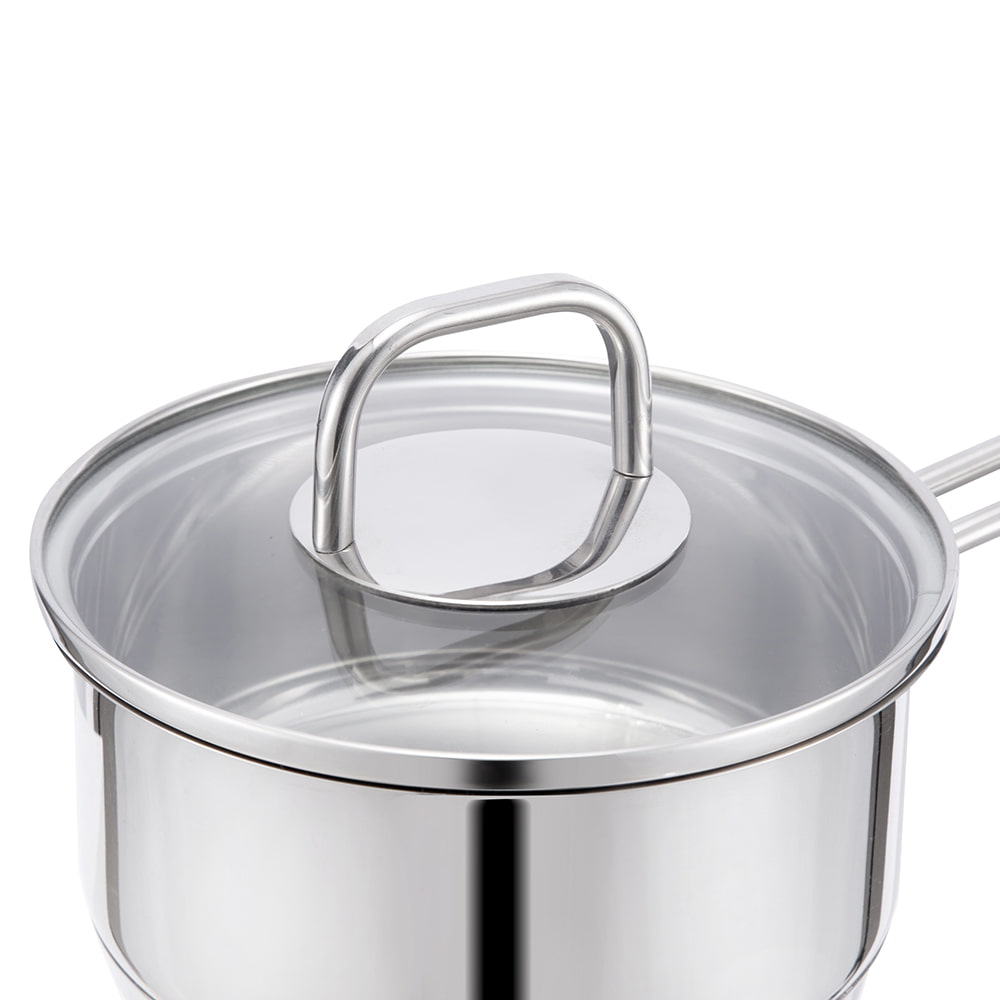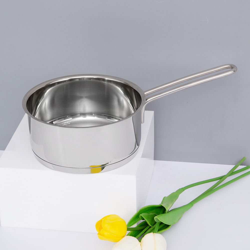 Rozsdamentes acélból készült, modern háromrétegű alaptechnológiával (rozsdamentes alumínium rozsdamentes acél), amely egyenletesen osztja el a hőt, gyorsabb főzést biztosít, és hosszabb ideig melegen tartja az ételt. 16 cm átmérőjű, kiváló méretű különféle konyhai feladatokhoz.