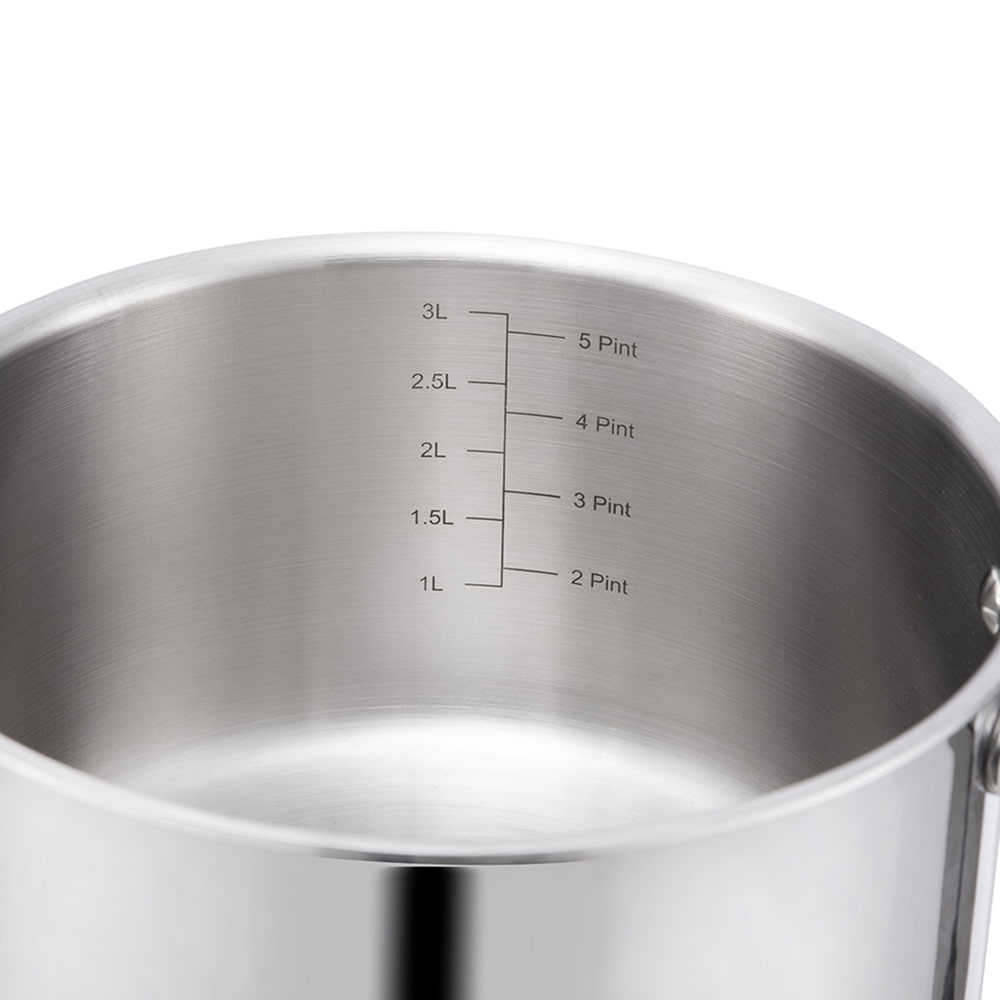 Rozsdamentes acélból készült, modern háromrétegű alaptechnológiával (rozsdamentes alumínium rozsdamentes acél), amely egyenletesen osztja el a hőt, gyorsabb főzést biztosít, és hosszabb ideig melegen tartja az ételt. 18 cm átmérőjű, kiváló méret a különféle konyhai feladatokhoz.