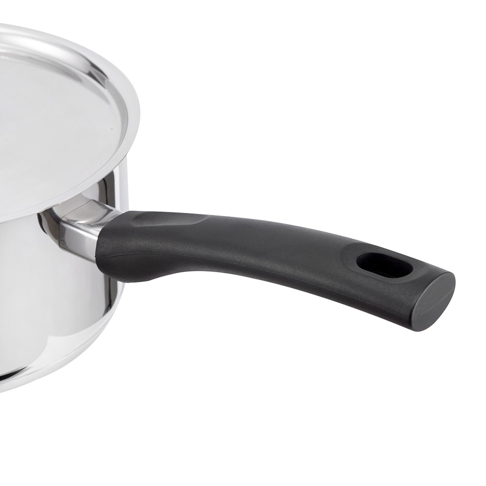 Rozsdamentes acélból készült, modern háromrétegű alaptechnológiával (rozsdamentes alumínium rozsdamentes acél), amely egyenletesen osztja el a hőt, gyorsabb főzést biztosít, és hosszabb ideig melegen tartja az ételt. 18 cm átmérőjű, kiváló méret a különféle konyhai feladatokhoz.