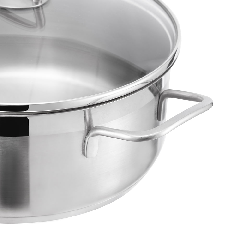 Időt és energiát takarít meg: a titok a háromrétegű fenék (rozsdamentes alumínium rozsdamentes acél), amely egyenletesen osztja el a hőt a gyorsabb főzés érdekében. Ez az oka annak, hogy főzés közben alacsonyan tarthatja a hőt, ami energiát takarít meg.